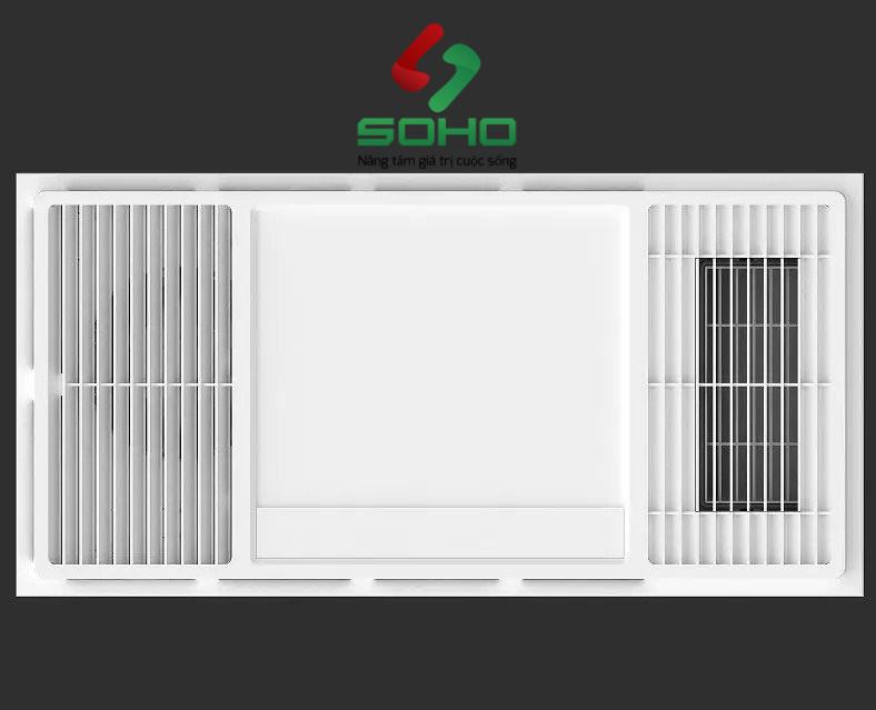 Năm chức năng trong 1: sưởi ấm- thông gió-làm mát- sấy khô- chiếu sáng. Quạt sưởi thông gió âm trần Soho SH0004 mang đến một sự đổi mới hoàn toàn cho không gian phòng tắm nhà bạn.