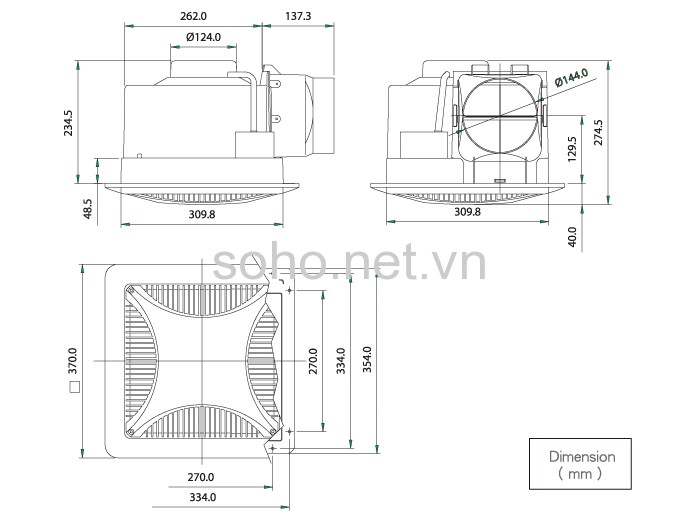 Kích thước lắp đặt quạt thông gió Alaska 768