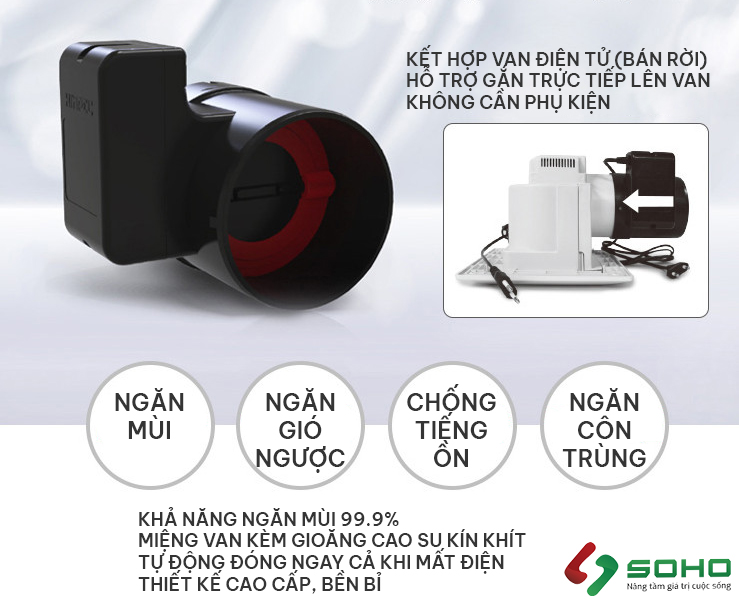 Thiết kế van ngăn mùi chảy ngược giúp không bị chảy mùi hôi từ phía đường ống bay ngược vào phòng. Đảm bảo chất lượng không khí trong phòng
