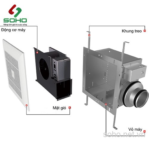 Đây là dòng sản phẩm quạt thông gió âm trần. Do đó, việc lắp đặt sẽ phức tạp và cần nhiều phụ kiện hơn so với các dòng quạt hút gắn tường. Bộ phụ kiện đầy đủ bao gồm: