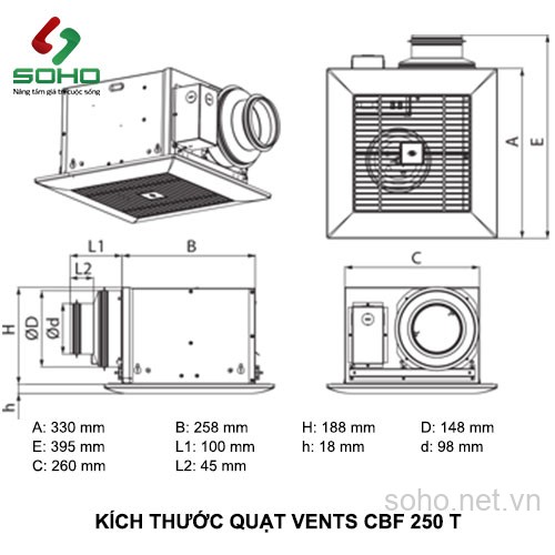 Trên đây là những thông tin cơ bản về quạt thông gió âm trần Vents CBF 250 T. Để được tư vấn các mẫu sản phẩm thông gió hút mùi phù hợp với nhu cầu sử dụng, quý khách hàng vui lòng liên hệ ngay Soho theo hotline: 0934.452.678 để được giải đáp nhanh nhất.