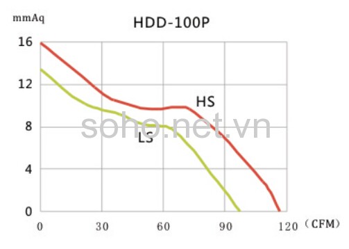 Thông số hoạt động của quạt thông gió đồng trục HDD-100P: