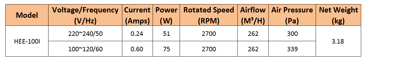 Đặc điểm quạt thông gió đồng trục ly tâm HEE-100I: