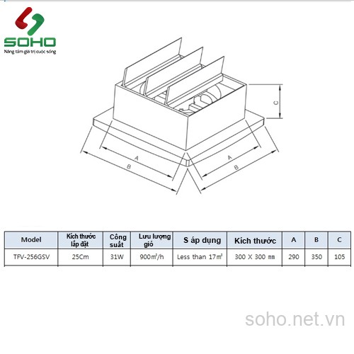 Là dòng quạt thông gió gia đình, quạt hút mùi Fanzic FTV-256GSV được nhiều người sử dụng để lắp đặt cho gia đình, khu vực phòng ngủ, bếp ăn, phòng vệ sinh, phòng làm việc,… Nó cũng được nhiều người lựa chọn để lắp đặt cho văn phòng làm việc, các cửa hàng nhỏ với diện tích tối ưu lớn nhất là 17m2. Kích thước quạt gió là 300×300 mm, khá nhỏ và tiện lợi cho việc lắp đặt các không gian nhỏ.