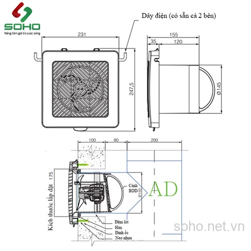 >>>Xem thêm: Quạt thông gió gắn tường Himpel FWA-S250